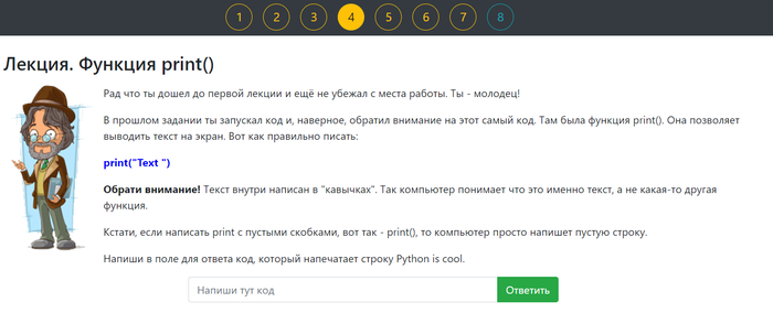 Немного лучше, правда?) Эта версия вышла в свет буквально на днях и очень понравилась детям. Но увы, не все так гладко я умею создавать. Настоящим испытанием стало создание квестовых персонажей. Я хочу чтобы ребята, когда проходили обучение, получали задания от мультяшного менеджера, узнавали информацию от профессора и максимально погружались в атмосферу) Используя картинки из интернета, получилось сделать нечто подобное на интересную лекцию: