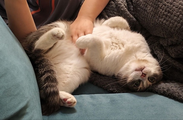 В последний день весны 2022 года добрая женщина обнаружила во дворе жилого комплекса чудесную десятимесячную девочку котоподростка. Так Милли (теперь Ханна) и оказалась в «Муркоше».