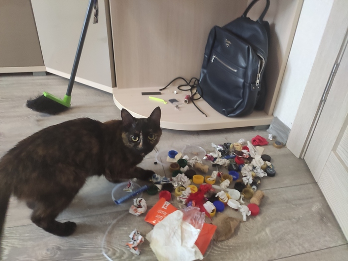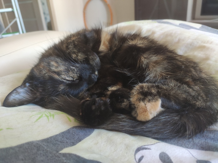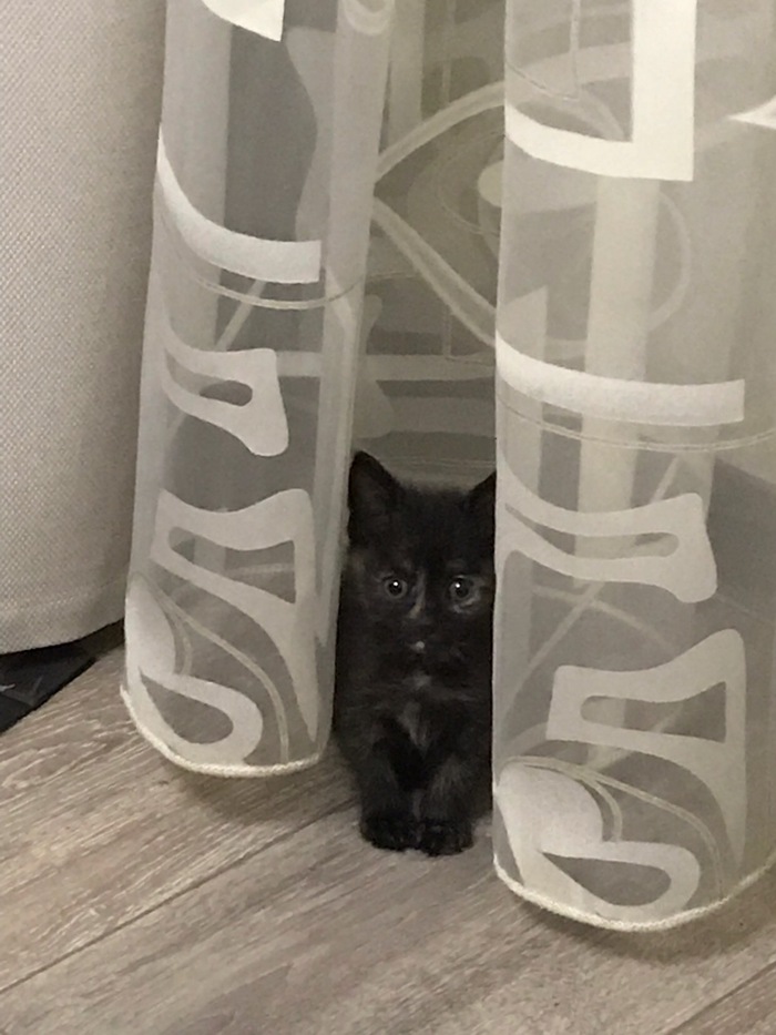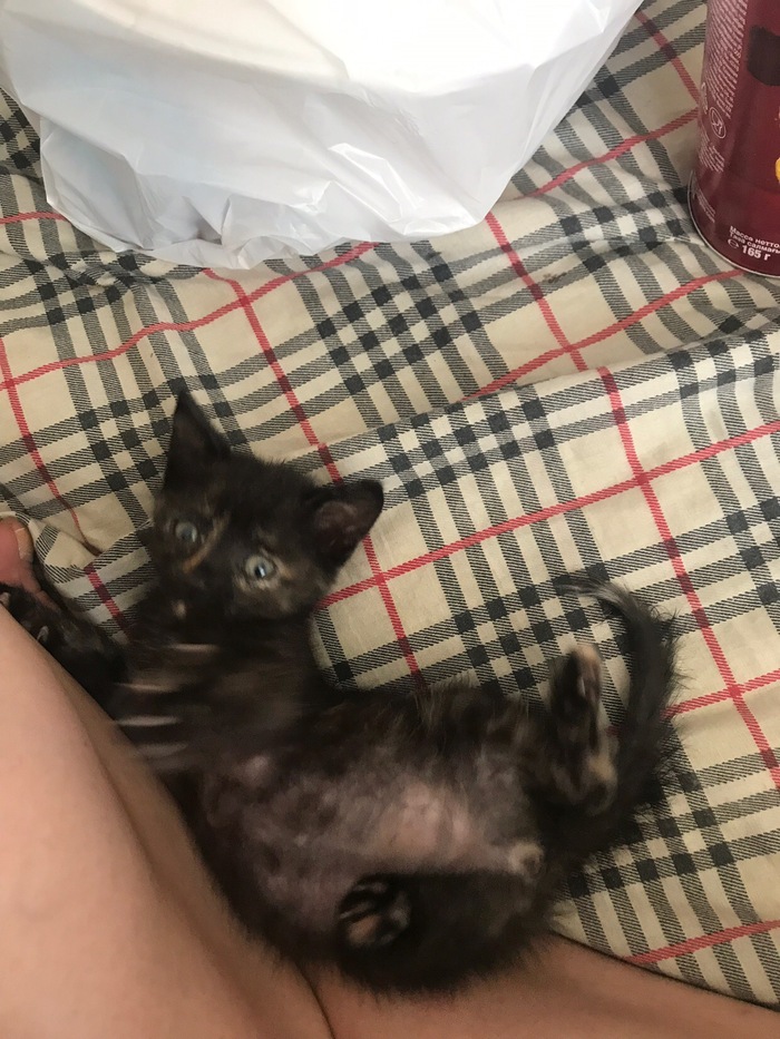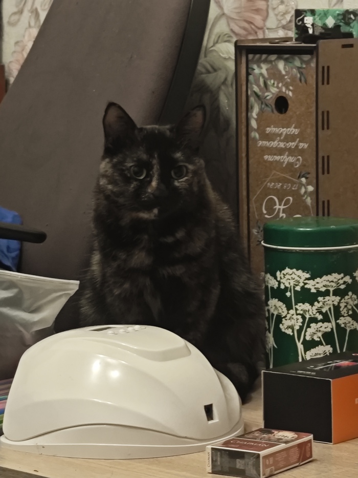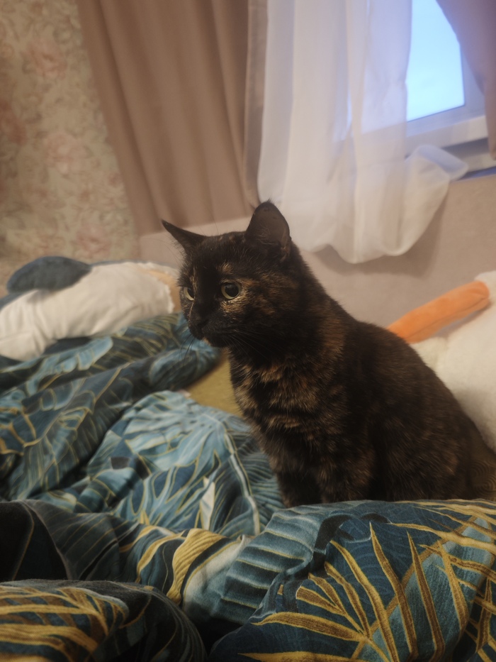 И вот момент истины. Приехал знакомый забирать одного малыша. Вокруг суета, а один котенок, черепахового окраса (черный с рыжими подпалинами), подошёл ко мне и с видом хозяина жизни уселся прямо на мой кроссовок.