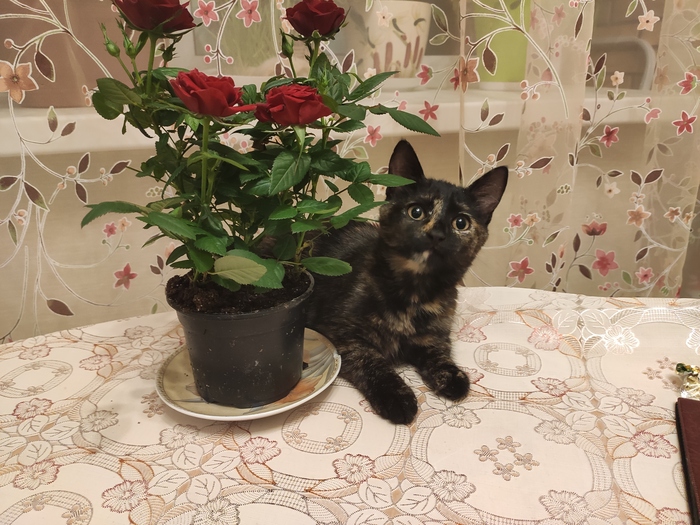Кустовые розы живут максимум неделю, после чего съедаются. Девочка цветы любит, хоть и по-своему 😅