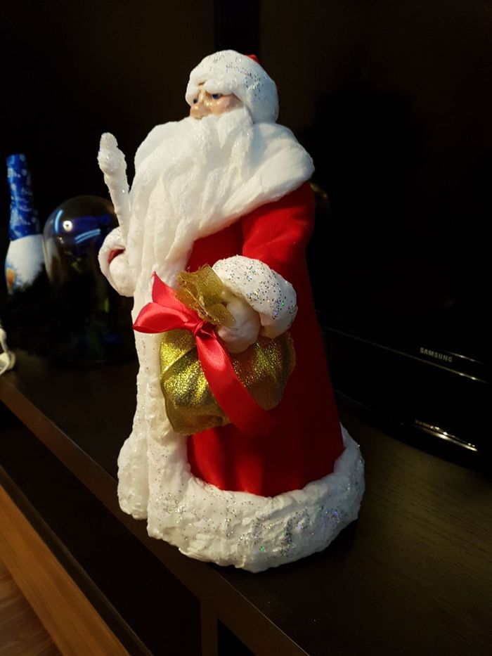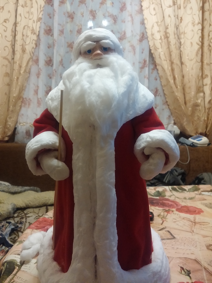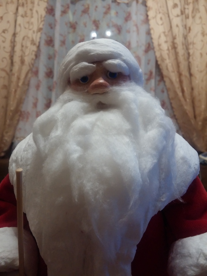 Захотелось сделать дед мороза, как из детства. С ватной бородой. И вот что получилось