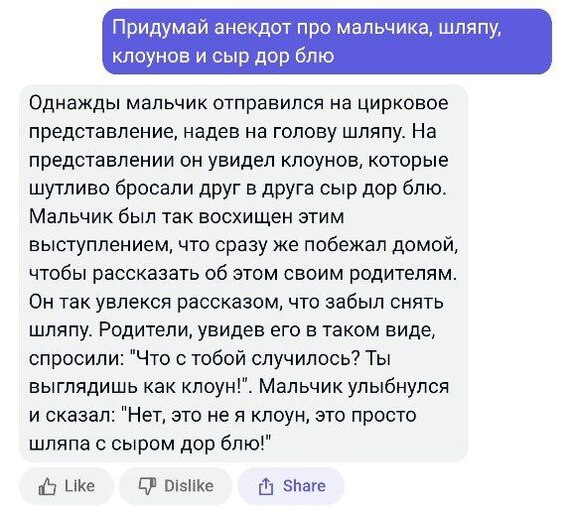 Зато можно уловить, что в юмор нейронка пока тоже не могёт: