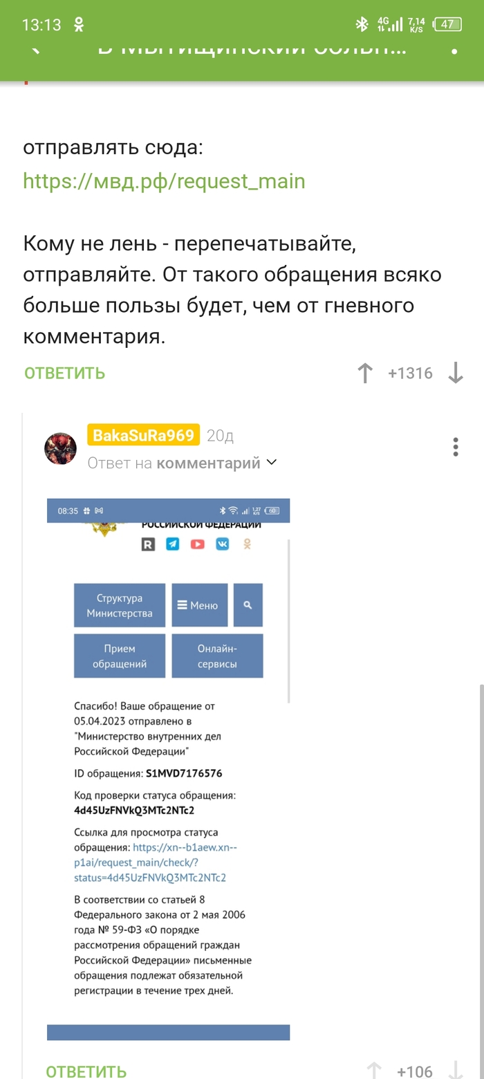 На днях шел по делам, навстречу мужчина. Голый по пояс, руки в штанах в районе паха. Сначала подумал эксгибиционист, но по поведению стало понятно, что или неадекват или под чем-то (или неадекват под чем-то). Не меняя скорости и скорости позвонил 102, описал ситуацию. На следущий день звонок. Представился участковым. Голос пипец недовольный, начинает задавать вопросы как зовут, где живу. Ну, думаю, сейчас начнется,- "никого не нашли, ложный вызов..." и т. д. А вот и нет. Росгвардия чувака упаковала и в психбольницу. Звонил узнать адрес куда направить ответ на телефонное заявление.