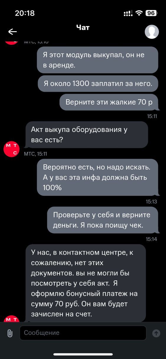 По итогу могу сказать что для меня эти 70р деньги небольшие, но от такого наглого их отъема я матерно опешил. Как я понимаю мтс тупо всем абонку накинуло вне зависимо от выкупа оборудования. По старым заветам пункта в договоре "ПРОКАТИЛО". Будьте внимательны и не выкидывайте никакие старые бумаги/чеки/договоры. Кто знает когда и при каких обстоятельствах они понадобятся.