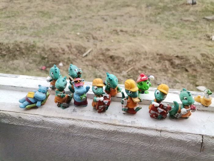 Потом мой дед мне принёс эти заветные ништяки. Два яичка!!! В одном попался бегемот-капитан, а во втором сборный черно-белый кораблик. Этот капитан плавал по морям и искал себе друзей. И нашёл бегемотиху в шляпке. Но потом появился соперник в соломеной шляпе и сердце бегемотихи разрывалось.