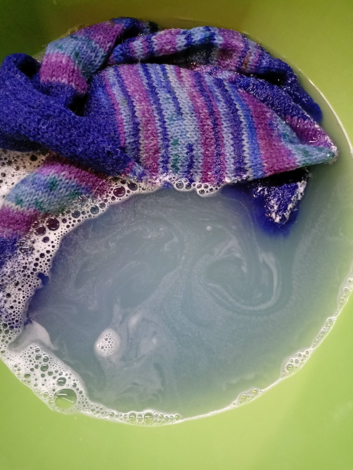 Остался раствор красителя для яиц, так я в нём пряжу покрасила.
