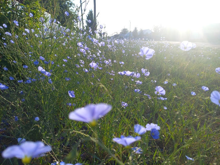Лен многолетний: утром весь в цветах, а к обеду сбрасывает все лепестки. На следующее утро опять весь в цветах.