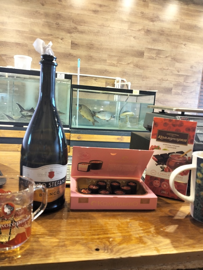 На работе отмечали 8 марта с напарницей). Атмосферненько)))