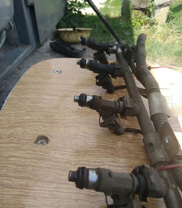 Опущу процесс изыскания, с заменой местами свечей, катушек зажигания, даже бессмысленной покупки новой проводки для катушек зажигания, прозвонки проводки и т.д. В общем так, после прочистки форсунок я был в них уверен на 100% и в их сторону даже не думал. Обратился за помощью к другу, он со сканером, дефектоскопом, компрессометром и ахуенным багажом познаний прибыл на место мозгового штурма. Несколько часов как один миг. Компрессия почти 14 в каждом (уже хорошо), задиров нет (а их и не было). По ошибкам пропуски в цилиндре (да мы и так знали) и более ничего. А когда дошли до размышления, почему троит и что дело в подсосе воздуха (как вариант) разобрал весь впуск в поисках и снял топливную рампу. Сменили форсунки местами и опа нихуя себе бля не работающий цилиндр последовал вслед за форсункой. Вот где крылась проблема. Причём форсунка на стенде работала просто на 5 баллов. Претензий 0. Что с ней случилось от сервиса до рампы загадка. По итогу оригинал BOCSH 2600р штука. И очень сложно было найти. Аналоги от 2200р и в доставке от 8 рабочих дней.