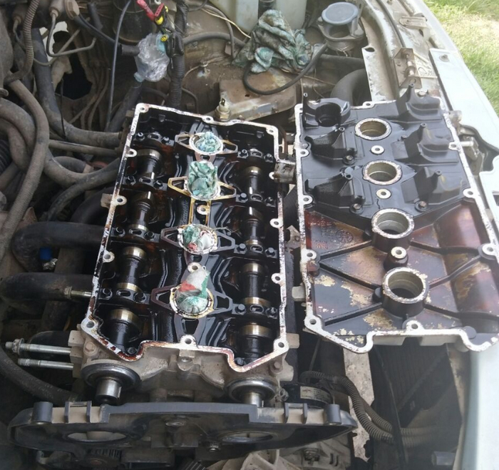 По итогу купил, снова раскидал пол двигателя, поменял и собрал. Затем я постоял подумывая, а что если я сейчас заведу и снова пойдёт что то не так. Куда дальше копать и что менять/измерять/откручивать. А потом я вспомнил для чего, вернее для кого я купил когда то этот автомобиль. Пусть будет что будет, Я снова его разберу и починю, сколько бы усилий мне это не стоило. Потому что я сказал, что починю автомобиль своему сыну Диме. По итогу это видео я радостный записал когда всё закончилось (проверилось/дотянулось/и успокоилось). И отправил своему сыну. А почему его не было на месте ремонта я уже описывал ранее.