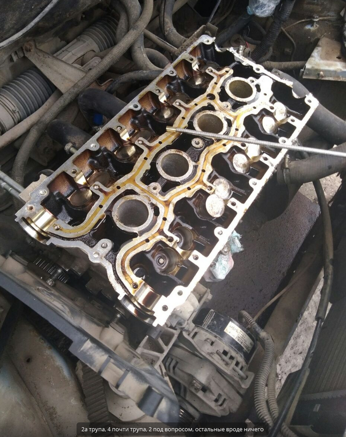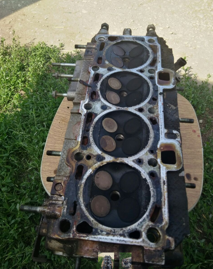 ГБЦ отшлифована в 0,5мм. Далее пяти соток шлифовка уже не целесообразна, там уже нужна фрезеровка, расчет толщины прокладок блока, а там уже они другие и прочее. Есть пару мест которые съела коррозия и время, но пойдёт. Всё было безжалостно зачищено.