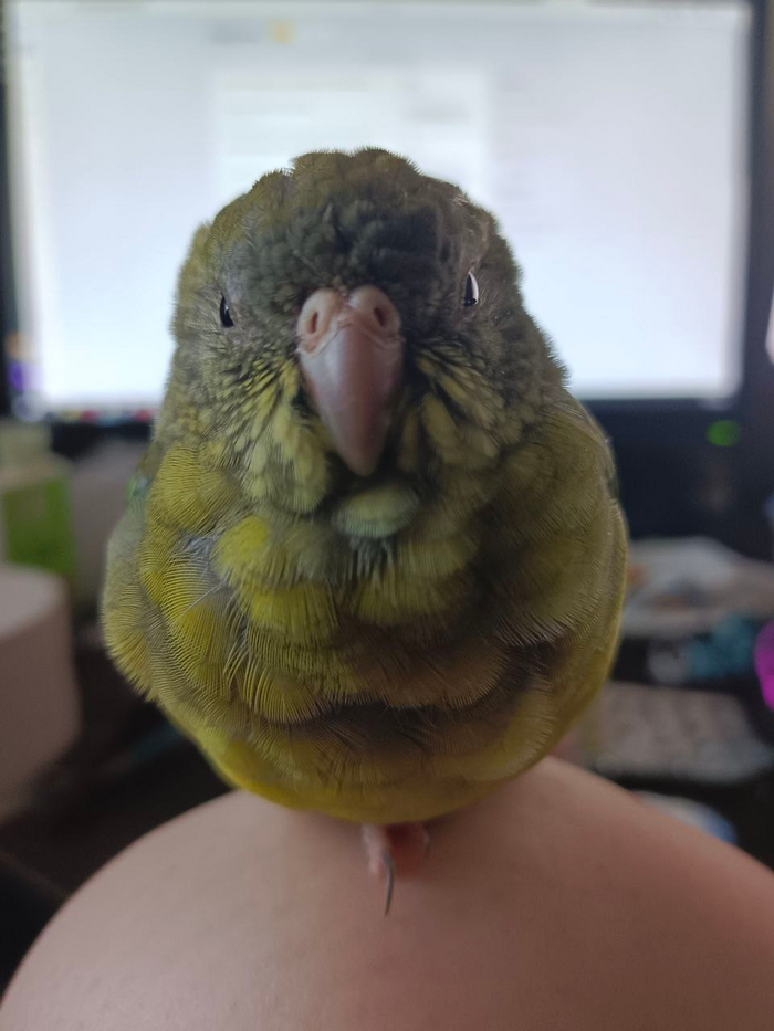 И его величество Карась! Попугай который считает себя толи собакой, толи человеком, толи рыбой, скорее всего все сразу! Охраняет дом, людей, общается с стиральной машиной и любой бытовой техникой которая пищит! Пытается искупаться в любой жидкости ( вода к кружке, мытые овощи, чай, кофе, суп, пиво) любит почесушки, контролирует всех и вся, обожает пастись на полу в поисках еды и воровать корм у соседей ( мы то конечно кормим её, но эта зеленая молния вечно голодная)