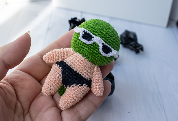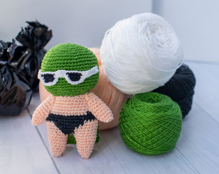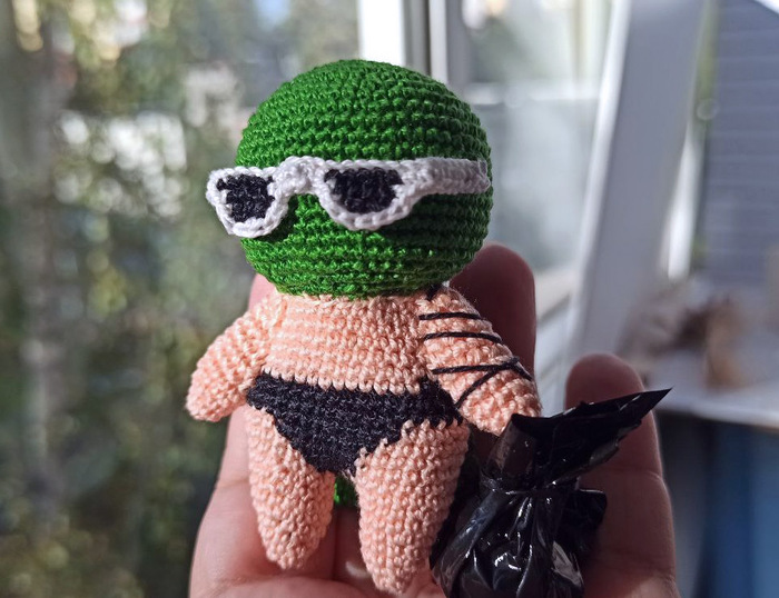 Не умею в 3д, как тут предлагали сделать макет для 3д принтера, так что сделала, что умею. И это маленькая вязаная игрушка Чистомэна в нашем любимом одеянии и да, с плащом в жопке, куда ж без этого! Не представляете, сколько раз я эту жопку переделывала, чтоб она такая сочненькая получилась, а потом её спрятала в плащ, да ужж, разум и логика. Всё как мы любим. Ну может тут чуток видно: