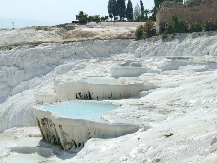 Памуккале – это место, где минеральная вода из глубин земли выходит на поверхность благодаря тектоническим движениям, образуя 17 минеральных источников.