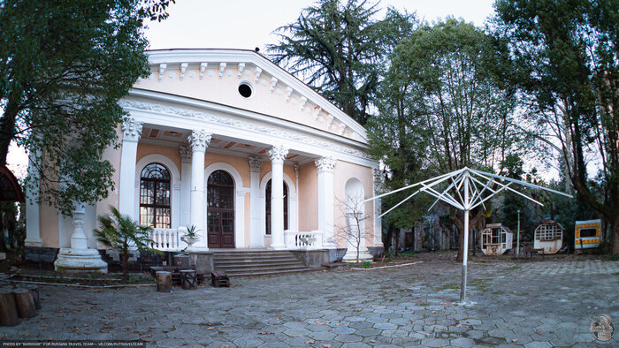 Следующий на очереди — «лечебный корпус». Элегантное и богато украшенное одноэтажное здание с башенкой было визитной карточкой санатория. Выгодно разместившись у самого берега оно могло стать отличной гостиницей или уютным кафе, но судьба распорядилась иначе.