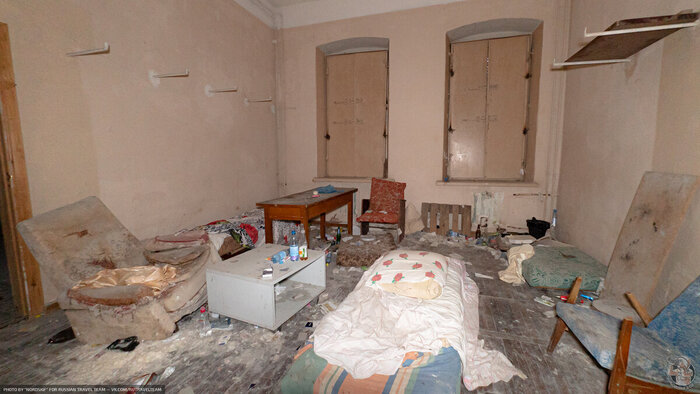 Результатом того, что санаторий закрыли, а персонал включая охрану распустили — стало нынешнее состояние помещений.