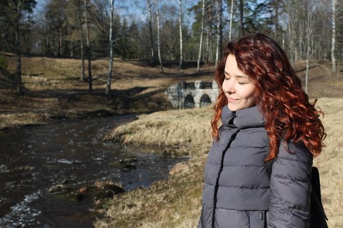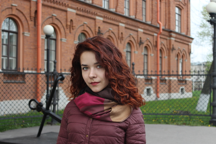 До 18 лет волосы я никогда не стригла и не красила. Потом прошел школьный выпускной и я тут же пошла в парикмахерскую. Была невероятно счастлива, что избавилась от груза и постоянно трогала волосы:) Одновременно с этим я переехала в Санкт-Петербург поэтому такое типично-туристическое фото.
