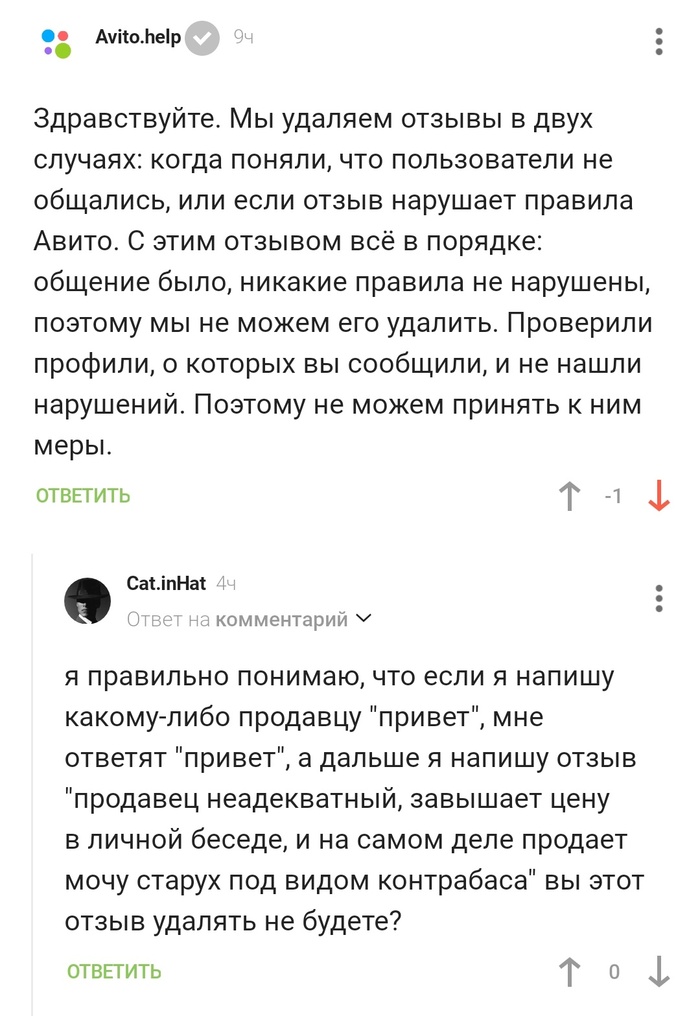 Продолжение поста «Все что нужно знать об отзывах на Авито»