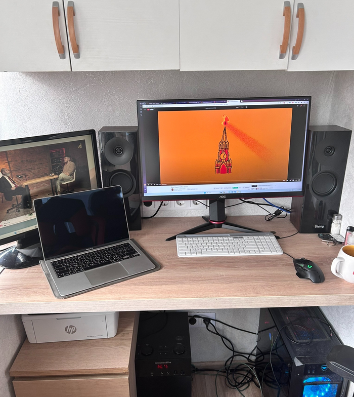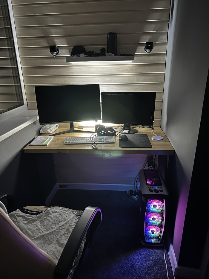 По итогу в "кабинет" переехал системник, стало где развернуться с двумя мониторами. А вот принтер, колонки так и не доехали, потому что место частично занято инструментами, кейсами.