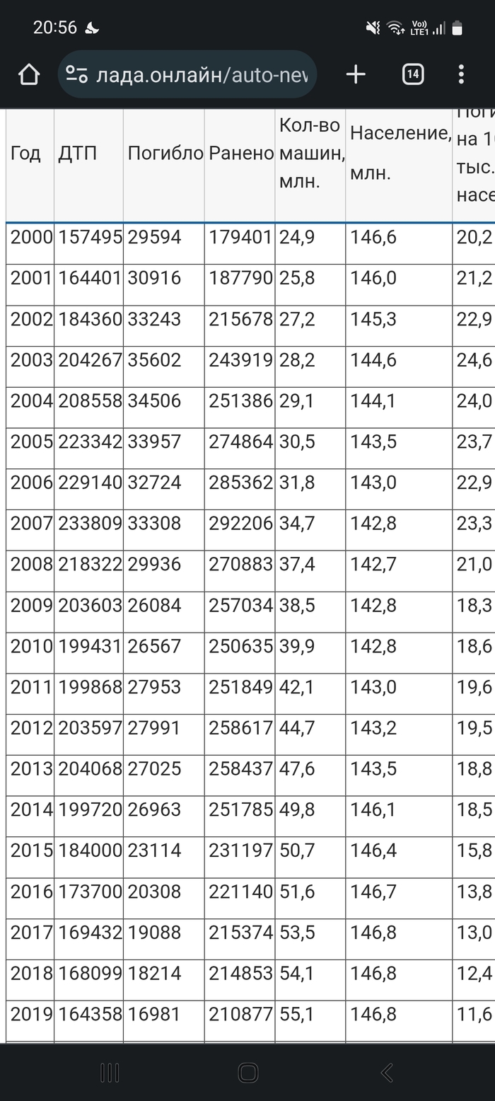 А теперь втора картинка. Статистика смертности в ДТП в России по годам.