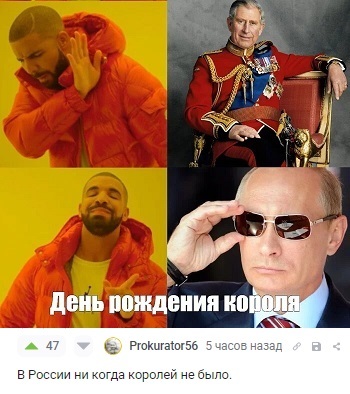Posolnafig СССР:Рождённые и Наследники Ответ korpinder в «С днем рождения, Владимир Владимирович!» 2 года назад Недано погрузился во все виды иронии, раньше одной обходились... Поправьте, если я накосячил: преирония ирония Постирония Метаирония Показать полностью 3 [моё] Владимир Путин День рождения Поздравление Картинка с текстом Политика Мемы Король Карл III (Принц Чарльз) Король Ответ на пост 2 Ещё 0