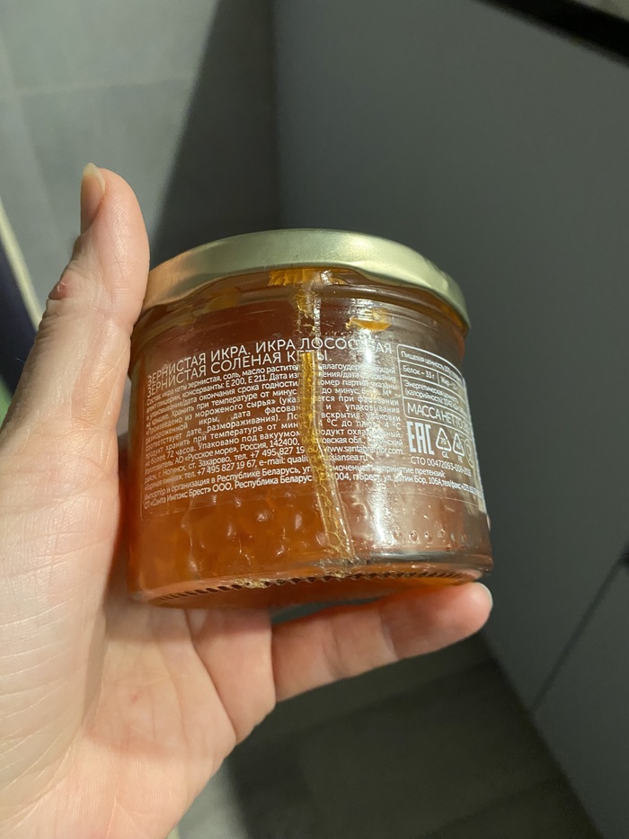 На фотках видно, что крышка помята и поэтому икорная жижа вышла вовне.