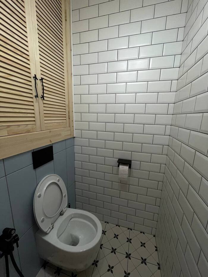 Приходил конечно не вовремя, пару дней пропустил, но доделал нам ванную. К слову предыдущим мастерам мы не дали расшить туалет, и этот новый мастер просто развел затирку чуть пожиже и перетер все поверх новым цветом). Ничего не отвалилось, все держится и казалось, что этого вообще можно было не делать. Так что не знаю зачем расшивали ванную, может потому что тупые, а может - хотели заработать на доп работах.