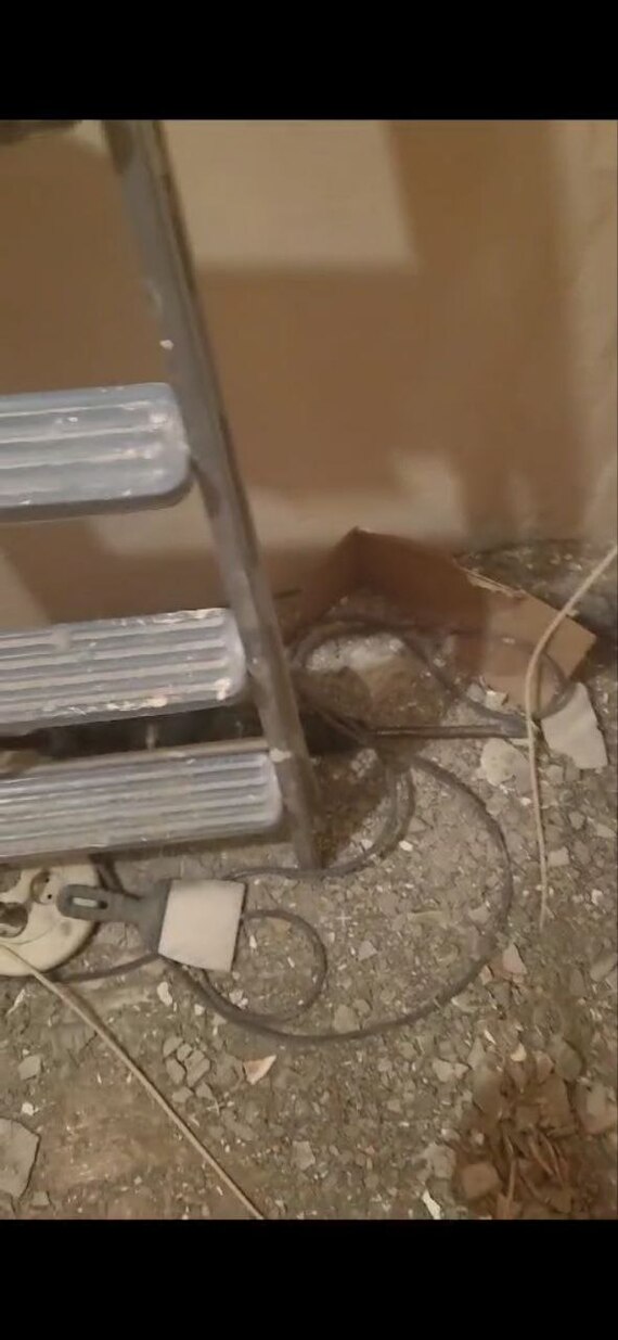 В куче мусора на первой фотографии можно разглядеть перфоратор. Молоток разглядеть нельзя - его мы нашли в процессе разгребания этого хлама - уборкой эти работники не занимались никогда.