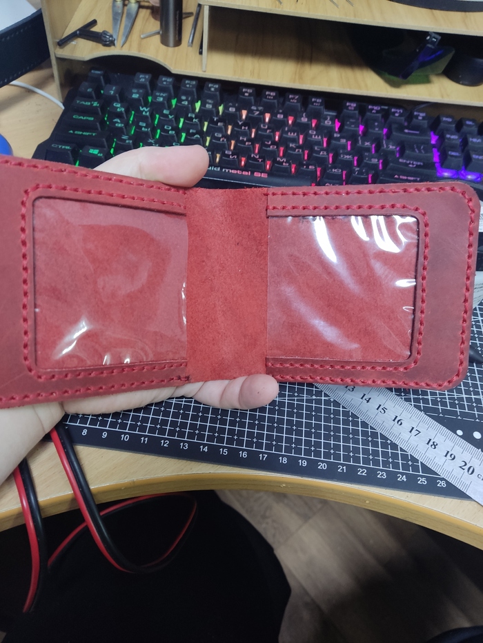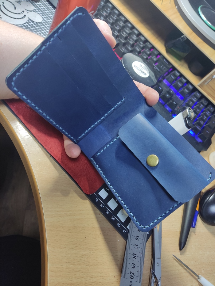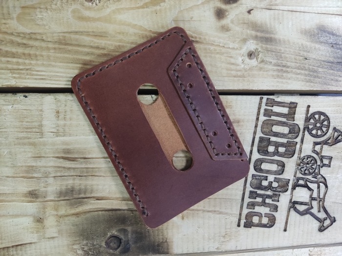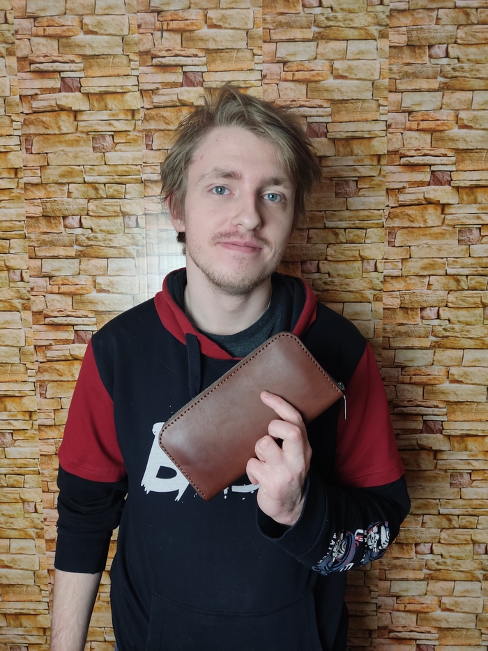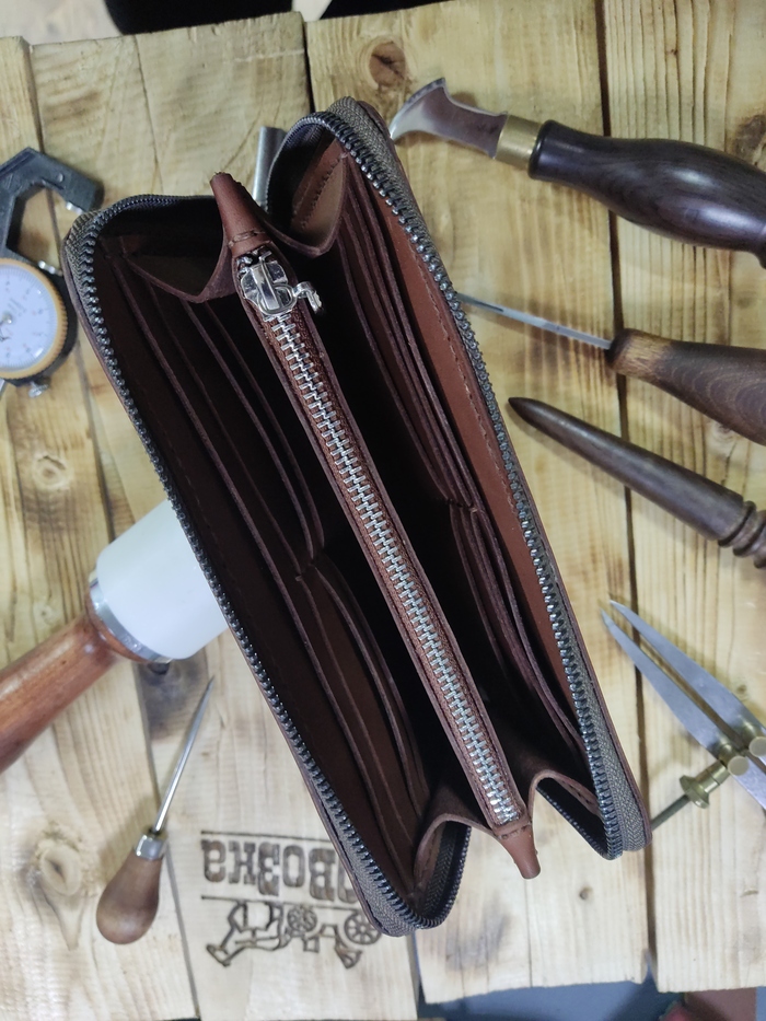 Использовали хорошую, плотную кожу, правда вещь массивная, мужской аксессуар. Если шить для дам, то кожа нужна потоньше.