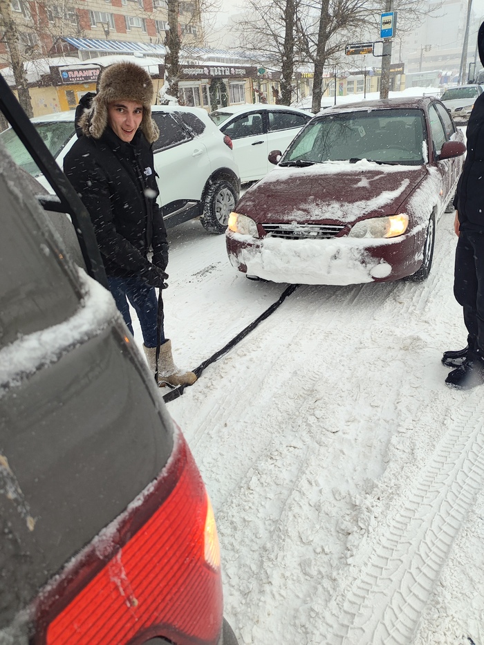 И снова возвращались с деревни, но еще на буханке, и кажется это прямо после свадьбы было, значит год 2013й. Поздний вечер, зима, часов 10-11 вечера. Еду в своей полосе около 80 никому не мешаю, многие обгоняют, благо две полосы в сторону Иркутска. Около весовой вижу как впереди машину резко начинают тормозить и как один включают аварийку и останавливаются, значит чтото случилось, останавливаюсь и я. Ситуация следующая метрах в трёх от края дороги черный седан, кажется камрюха, не помню, видно что шел хорошо и просто по касательной туда ушагал, поропахпл метров 15 от места где начал бровку ловить, но от дороги почти не уехал. От капота валит пар, видно что вот только врюхался, двери ему открыть не могут - снега по ручки. Кто-то из остановившихся, а почти все кто остановился такие же мелкие, подошёл и спросил могу ли чего вытащить, говорю легко, ток за что его цеплять, мне ответили там фаркоп сзади, сейчас зацепим. Кто-то из остаеовившихся достал трос, зацепили, тащим, еду задним ходом по обочине, ничего не получается, угол не тот, посмотрел в зеркала никого не видно, вылез в правый ряд, и давай дальше тащить, дело пошло вот уже к бровке подтащил, но не вылазит. Думаю надо угол круче, фигня эт мы легко. И вот тут я делаю большую ОШИБКУ, прямо огромную: как получить больший угол вытаскивания: вариант А сделать тросс короче, сложить вдвое или трое, вариант Б посмотреть в зеркало убедиться что фар там не видать или они очень далеко и вылезти в левый ряд и продолжить тащить. Разумный человек выбрал бы первый вариант, а что сделал молодой балбес? Правильно полез в левый ряд, и напрочь забыл, что там сзади небольшое такое пониже рельефа этак метров в пятиста позади. Как нам тогда не впились в трос я ума не приложу, ибо когда в правом зеркале увидел фары, было уже рано, но видимо куча машин на аварийке плюс УАЗик на аварийке едущий задним ходом в левом ряду, веская причина притормозить заранее. В общем, ехавшая сзади, машина остановилась со мной бампер в бампер, я только успел переключиться на первую чтоб трос положить на асфальт, но не понадобилось. Водитель просигналил несколько раз, но поехал назад, я протащил ещё метра 4 назад, и выаля седан на обочине, толпа быстро отцепила трос. Я вылез, хотел прощения, попросить, что я такой дебил, но чудом не влетевший натянутый трос водитель уже уехал. И тут и Камри выбрались три тела, три мать его пьяных тела...это был единственный раз когда я пожалел, что остановился помочь, ведь они пьяненько сказали всем спасибо и дали по газам, даже машину от снега не почистили.