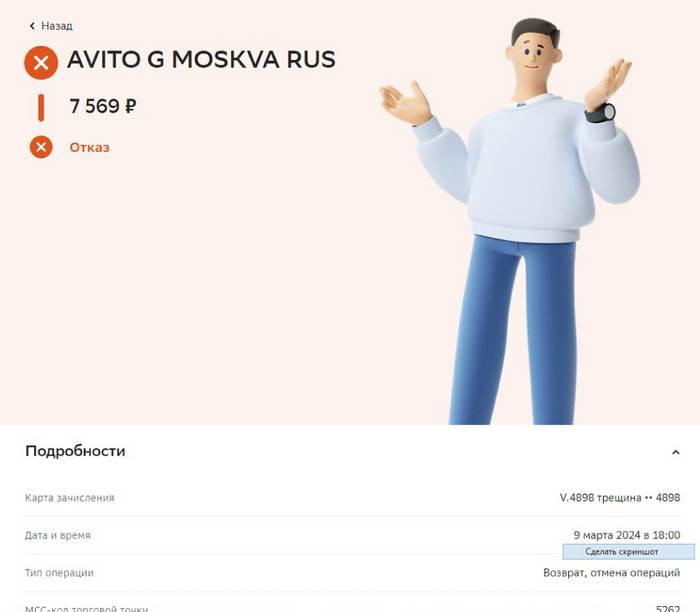 Сегодня 22.01, спустя неделю деньги не пришли на счет, хоть обещали в течение суток. Поддержка сообщила о технической проблеме, которую в поте лица разработчики пытаются устранить уже неделю без сна и отдыха. Речь идет о сумме в 7500 руб. По телефону не могут мне сообщить о сроках, которые компания Авито отводит своим разроботчикам по регламенту, возможно, до 2028 года будут решать. Рекомендуют писать в поддержку, поддержка отписывается формальной формулировкой о разработчиках, которые все еще устраняют. Видимо, нужно писать в Роспотребнадзор. Чтоб Авито хотя бы расщедрилась и сообщило сроки, которые отводят себе позволять не возвращать деньги, которые обещают в течении считанных минут вернут в случае чего.