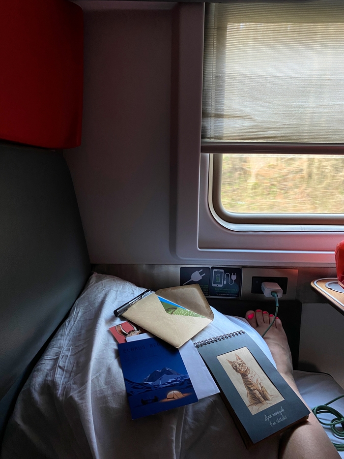 Потом поезд из мин. Вод в Сочи в ночь … я если честно не каталась на поездах около 15 лет. И я офигела . Почему так узко… даже мне. АПН давило и было очень душно…Рядом был дядя , который подарил нам конфетки на утро. Мне было за него грустно, потому что ему было тяжеловато… но мы поднимали друг другу настроение :) удивило что есть розетки, шторки , хотя бы чуток закрыться и поспать в длинной футболке )