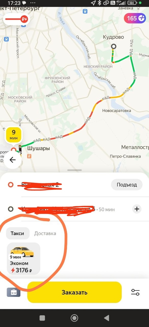 Заметила, потому что не хватило денег на карте, и оплата переключилась на наличные. Так вот, пока были выбраны наличные - поездка стоила 684 рубля, я пополнила карту до этой суммы, переключила на оплату картой - и мне пришло уведомление, что недостаточно денег для списания 720 рублей. В итоге я добавила на карту ещё денег, и писалось 720 рублей.