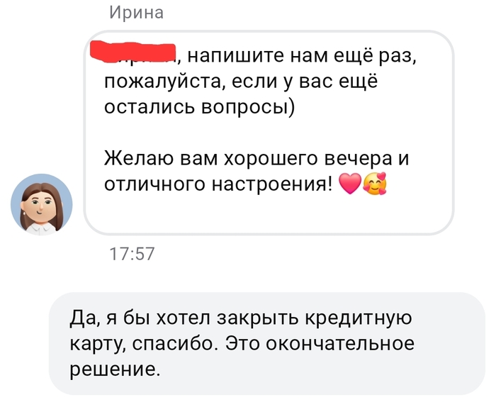 Я не собираюсь становится их клиентом и нести им свои охулиарды. Но нормальный СММ разобрался бы в сложившейся ситуации, объяснил бы причину отмены выдачи карты, убрал бы номер из обзвона аутсосерами (тут нет пропущенных букв).