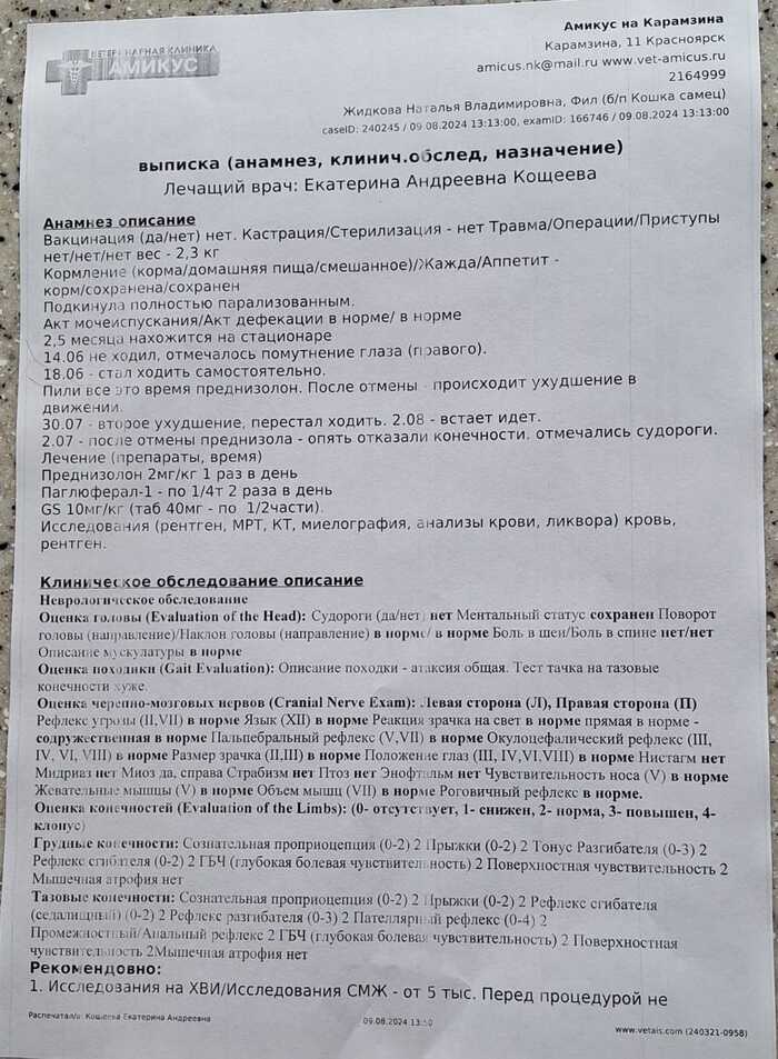 Филу немного легче. 9 августа -прием у невролога. Надеемся , прояснится ситуация с ухудшениями в состоянии кота. И лечение подберём.
