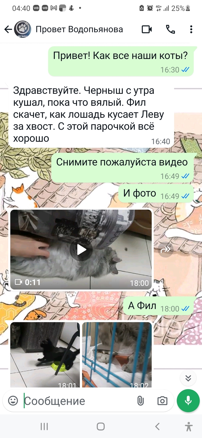 ...Кот чудесен...даже волшебен... реакции лучше, чем ожидалось... но все ещё неясно в чем причина таких качель по состоянию...