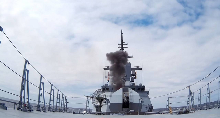 Действуя под единым управлением экипажи кораблей отразили атаку средств воздушного нападения условного противника с выполнением практической артиллерийской стрельбы, преодолели район с минной опасностью и уничтожили морскую плавающую мину.
