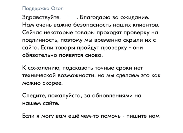 Вот что мне сейчас ответила поддержка @Ozon,