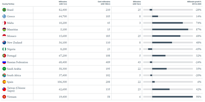 Страны с наибольшим количество миллионеров и миллиардеров.