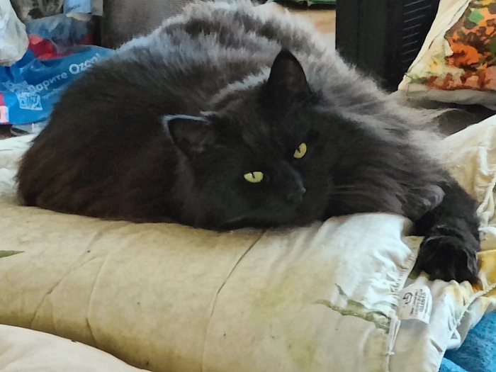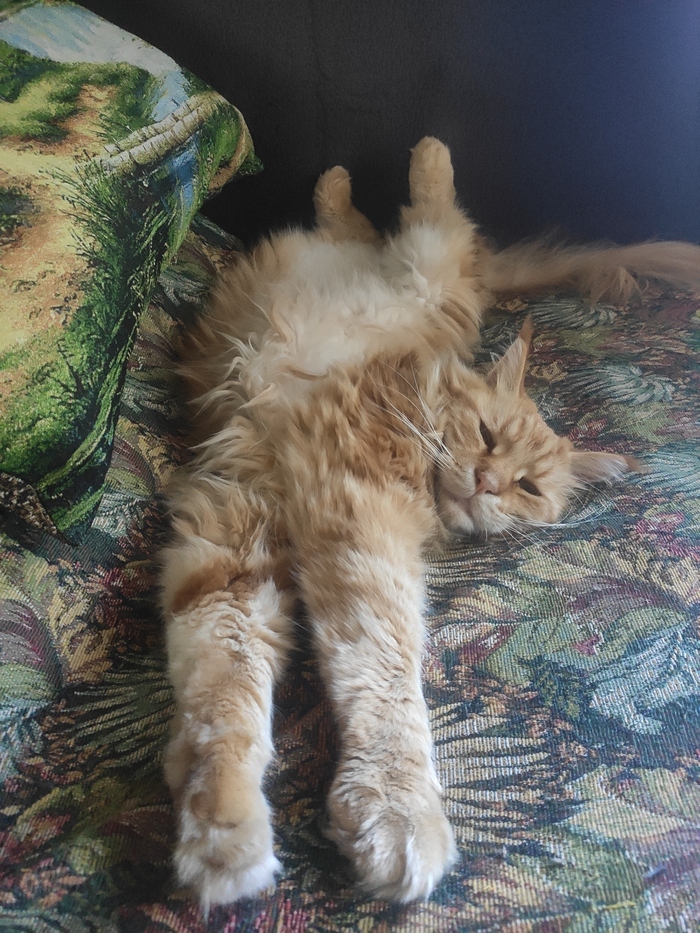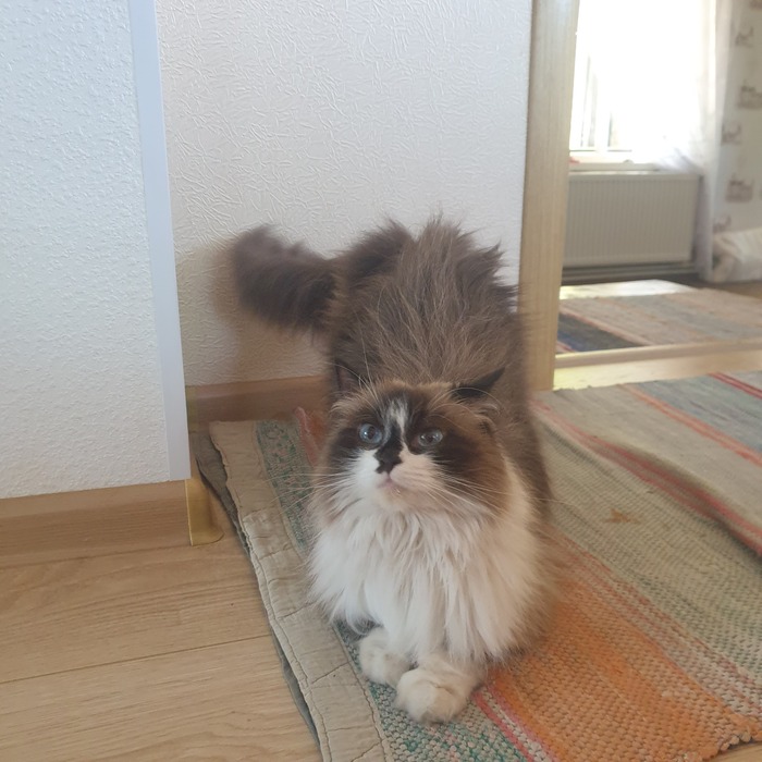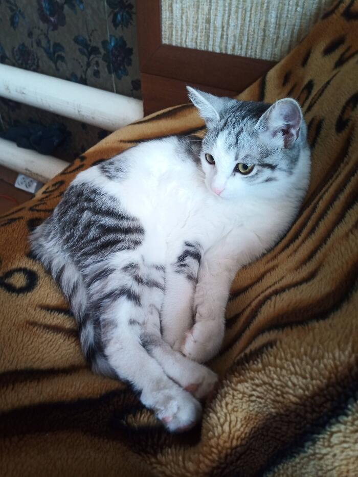 Взяли у соседей с 3 лет когда они переезжали. Сейчас ему семь. Очень ласковый и ночью приходит под бочок:) мурлыкает очень громко, а мяукает чуть ли слова простые не выговаривает.