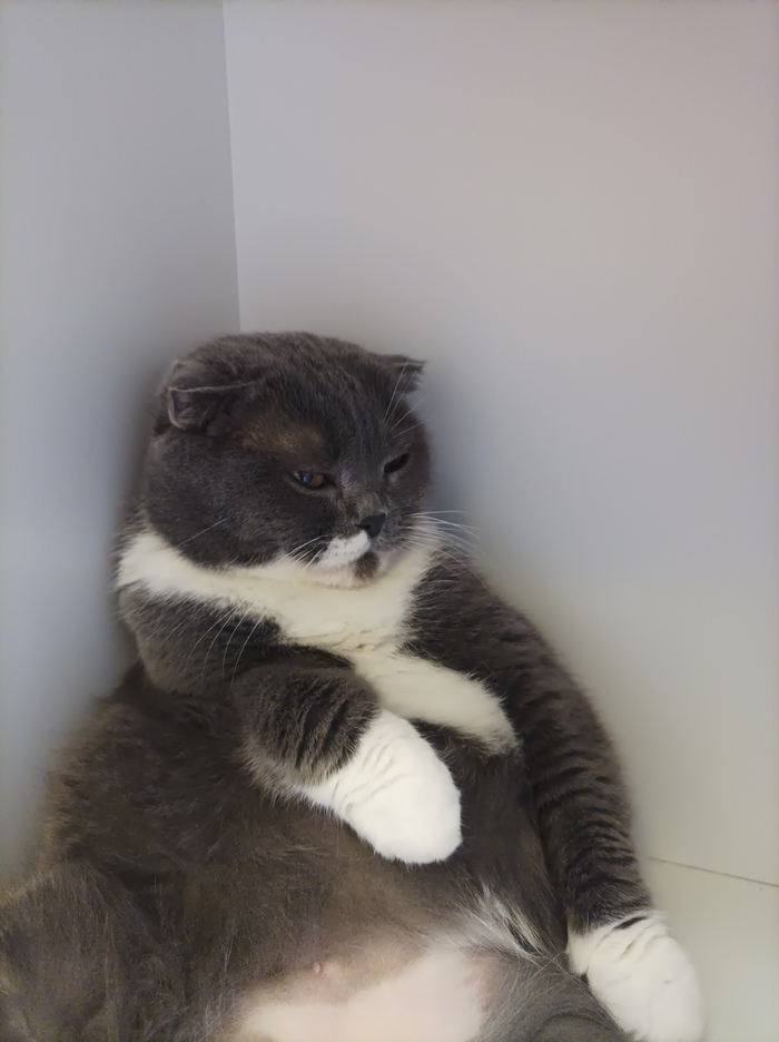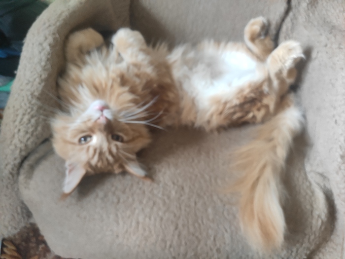 Тася в странной позе. (Она хотела чтобы ей почесали спинку)