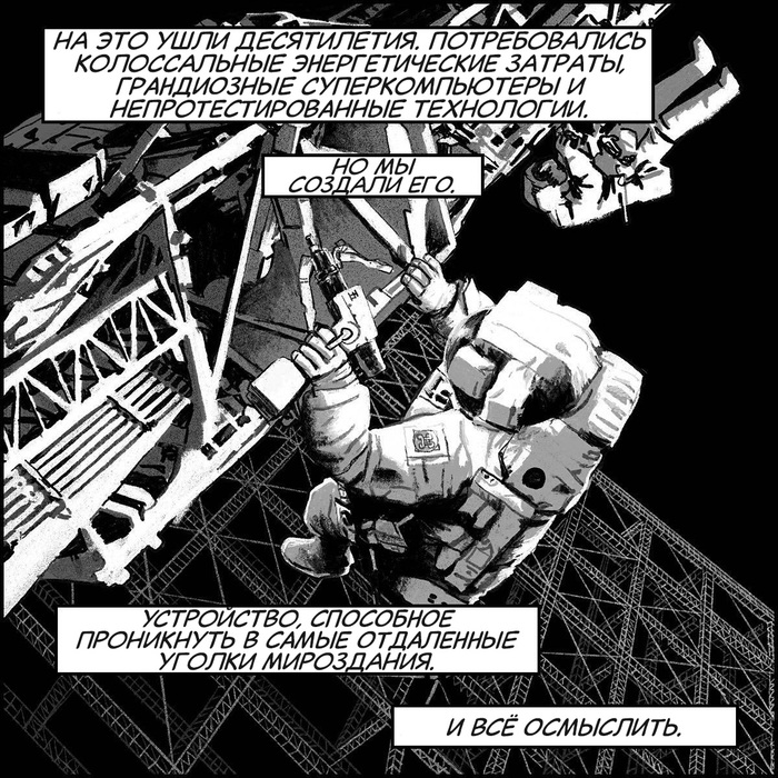 В итоге строительство ускорителя уже не звёздных а галактических масштабов - в круг млечного пути - длилось 4 миллиона лет. За это время человек по настоящему стал постчеловеком - единым неразрывным гибридом биологического и технологического, почти утратив белковые структуры. Научился получать энергию от солнца и летать в космосе. Многие люди 21 века дожили до того времени, также, как и все, модифицировав тела. Прогресс сильно замедлился, жизнь утряслась. Когда ускоритель был построен, было неясно, нужно ли вообще это объединение: ведь люди и так научились жить почти без конфликтов, довольными и почти неуничтожимыми. И лишь расчёты показывали, что объединённый человек всё же окажется ещё надёжнее и счастливее.