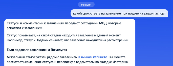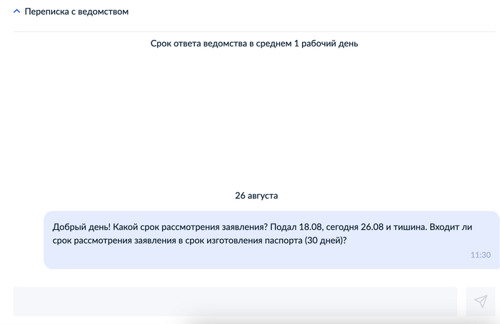 Кому интересно и для особо умных, рассказываю продолжение истории. 18 августа было подано заявление, 18 сентября естественно вопреки умникам из комментариев, которые обкакиваясь от радости кричали "что ты кипишь развел тут, 30 дней не прошло", по окончании 30-го дня ничего не произошло. Вчера попытавшись попасть на прием в МВД, я обнаружил, что ведомство изрядно перерабатывает и закрывается в 13 часов. Прийдя на прием сегодня, назвав свою фамилию, сотрудник МВД не удивилась и сказала, что как обычно ГосУслуги зависли и заявления они моего не видели, лишь сейчас она его зарегистрировала.