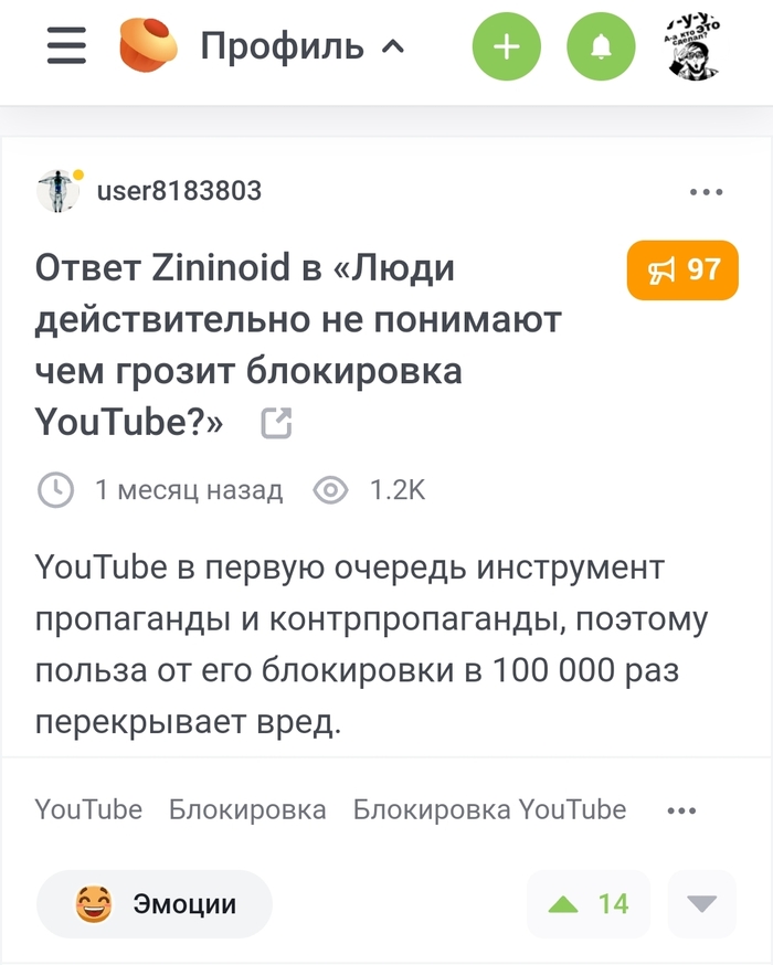 Специально выделю данного пользователя отдельным постом, боюсь его потерять, буду всем потом показывать пример скрепного мышления. Человека, которому не нравится жить в мире, за который он боролся.