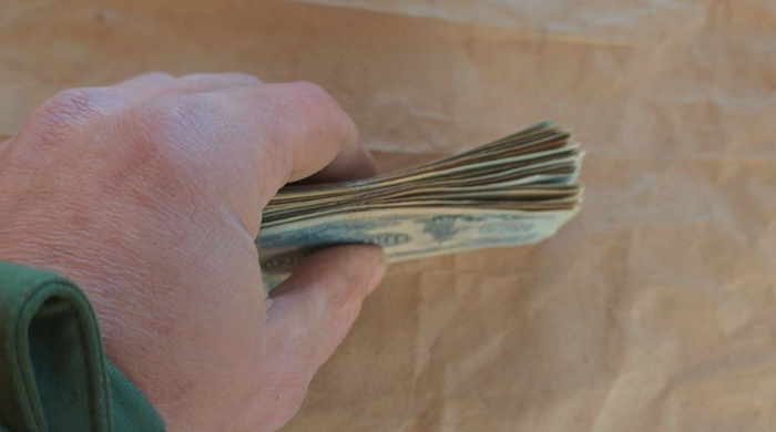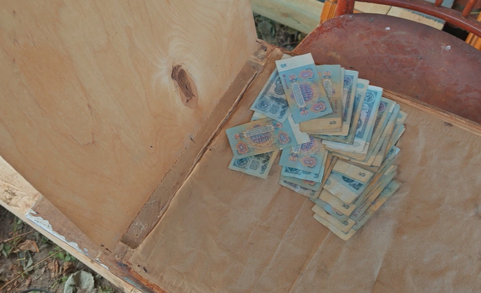 Обнаруживаю ворох купюр! По размеру и цвету понял, что преобладают 5 рублей СССР: