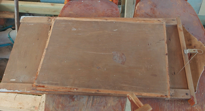 Продал рамы тут-же. Две за 2000 рублей. Снимаю заднюю фанерку, чтобы извлечь зеркало: