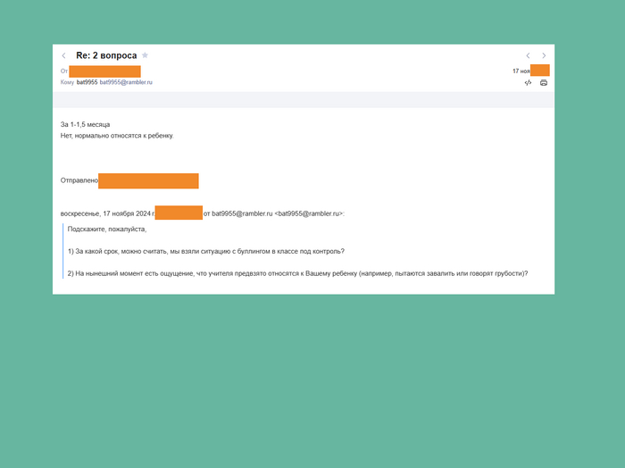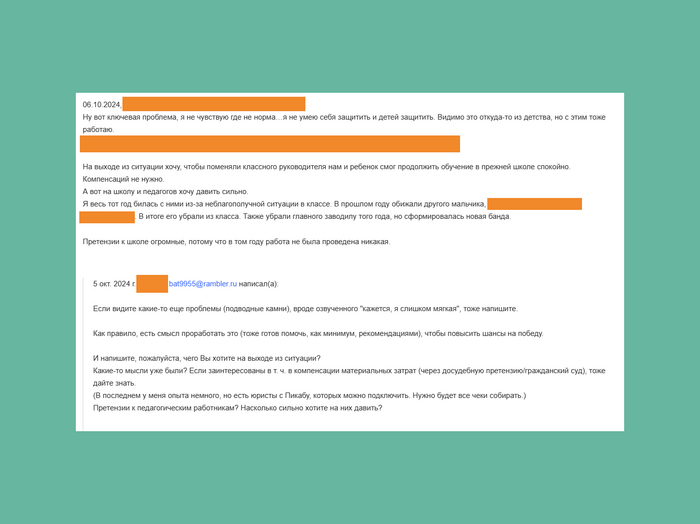 Я рад, что родители написали мне на почту и нам удалось взять ситуации под контроль.
