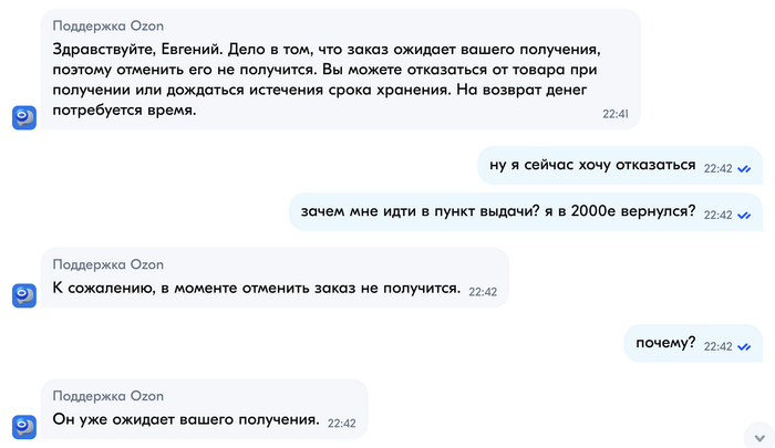 Ответ на пост «Ozon больше не дает отменять заказы»