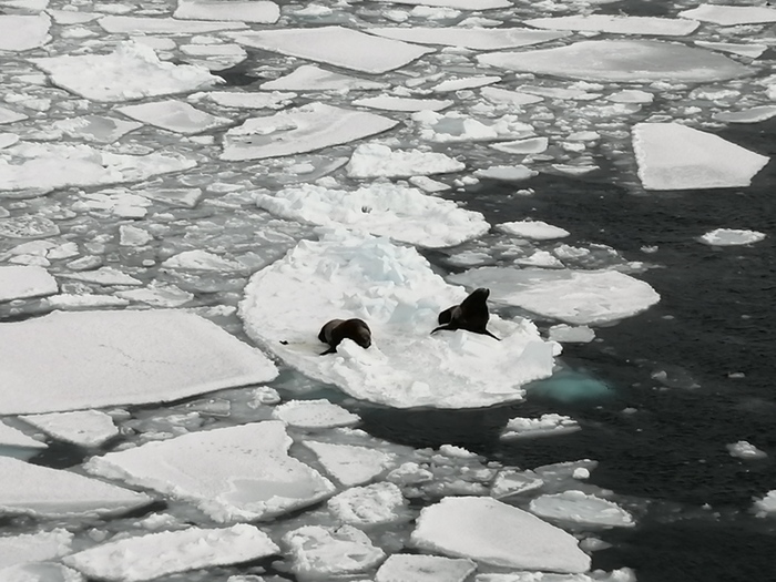 В 2019 году мы стояли в метровом льду возле станции Молодежная. При такой толщине льда штормовой ветер не мог сформировать волну. Зато проходящий мимо шторм, сформировал сильную волну на открытом участке океана, и эта волна пришла и поломала метровый лед. Лёд конечно сгладил волну, но при этом разломился на огромные льдины.
