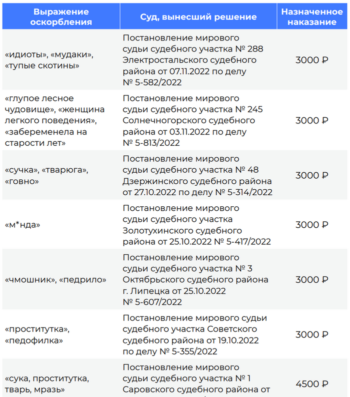 Тем не менее, "вообще" дел за хамство хватает, вот для примера несколько судебных дел: